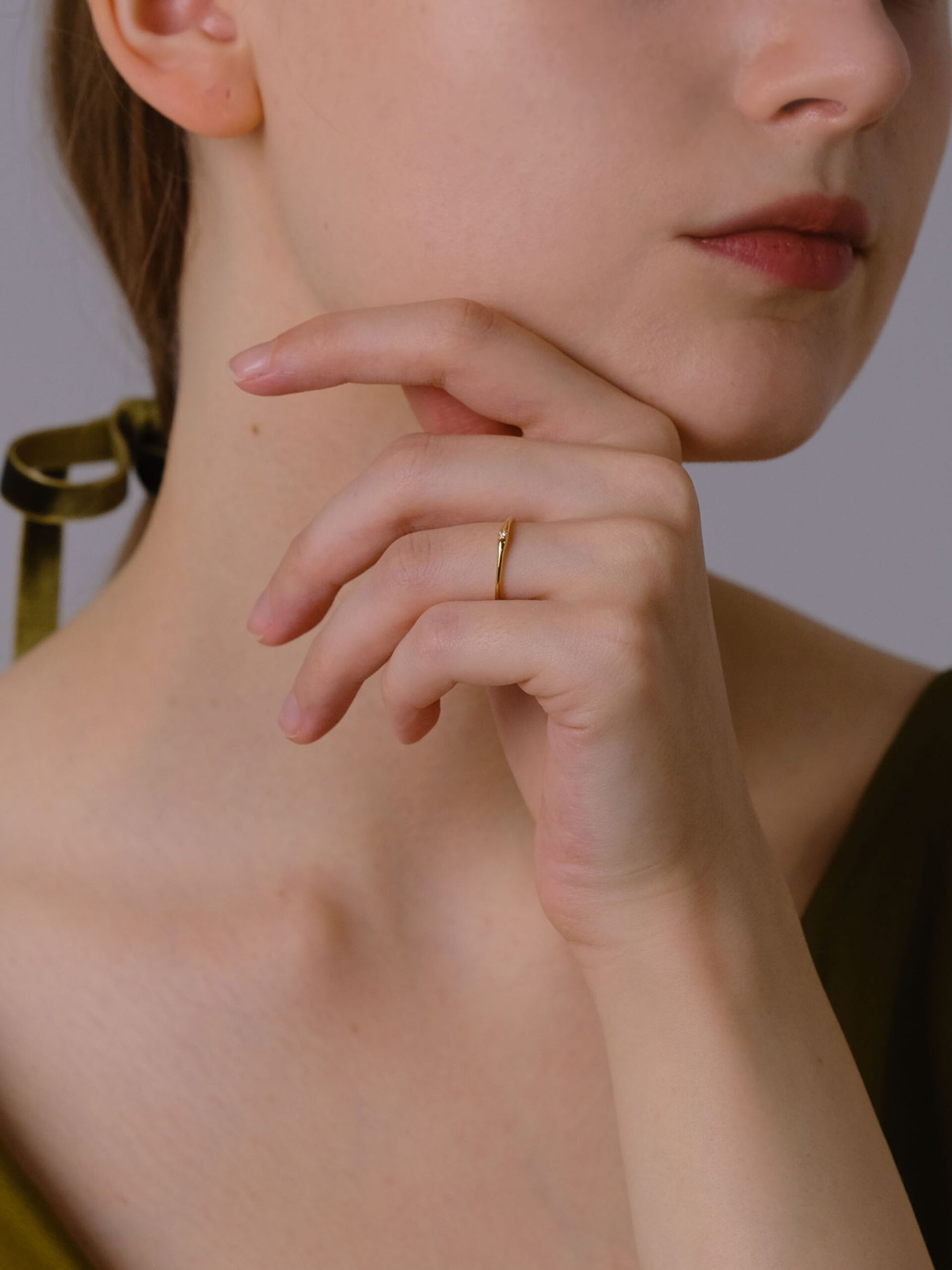 中心部分に高さをつけることで、他のリングと重ねた時にダイヤモンドが埋もれず主張するような設計です。