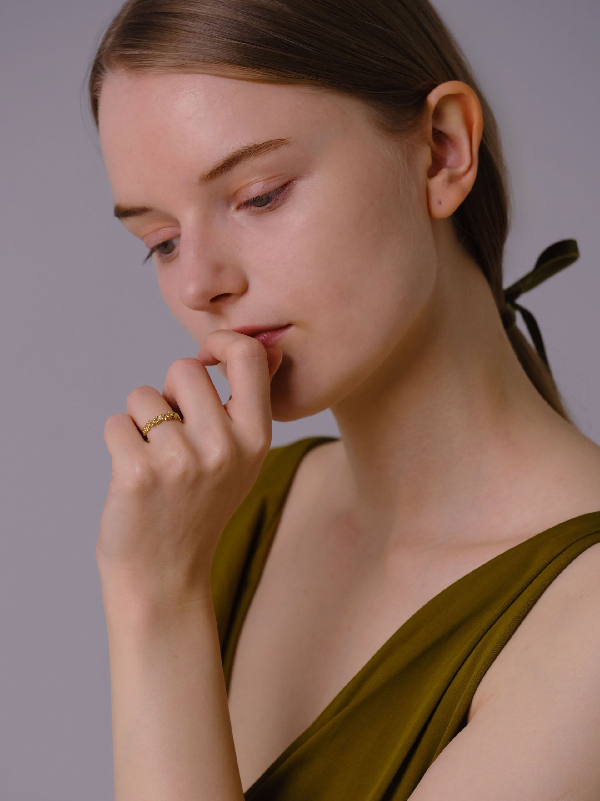 レースのような隙間も美しい、繊細なリングです。